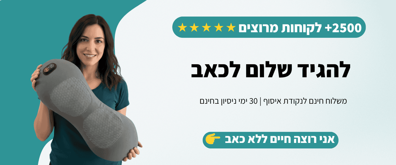 לאחר שנים של מחקר ושיתופי‑פעולה עם מומחי כאב מובילים בארץ ובעולם, פיתחנו את הפתרון המדויק שמכבה את הכאב, מחזיר את החופש בתנועה ומטעין אותך באנרגיה חדשה.